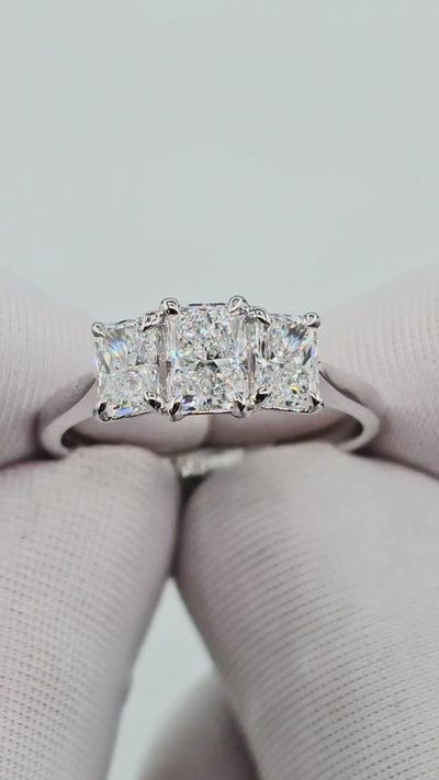 יהלומי מעבדה בשיבוץ ציפורני חתול בחיתוך קושן מלבני כ-1.30 קראט