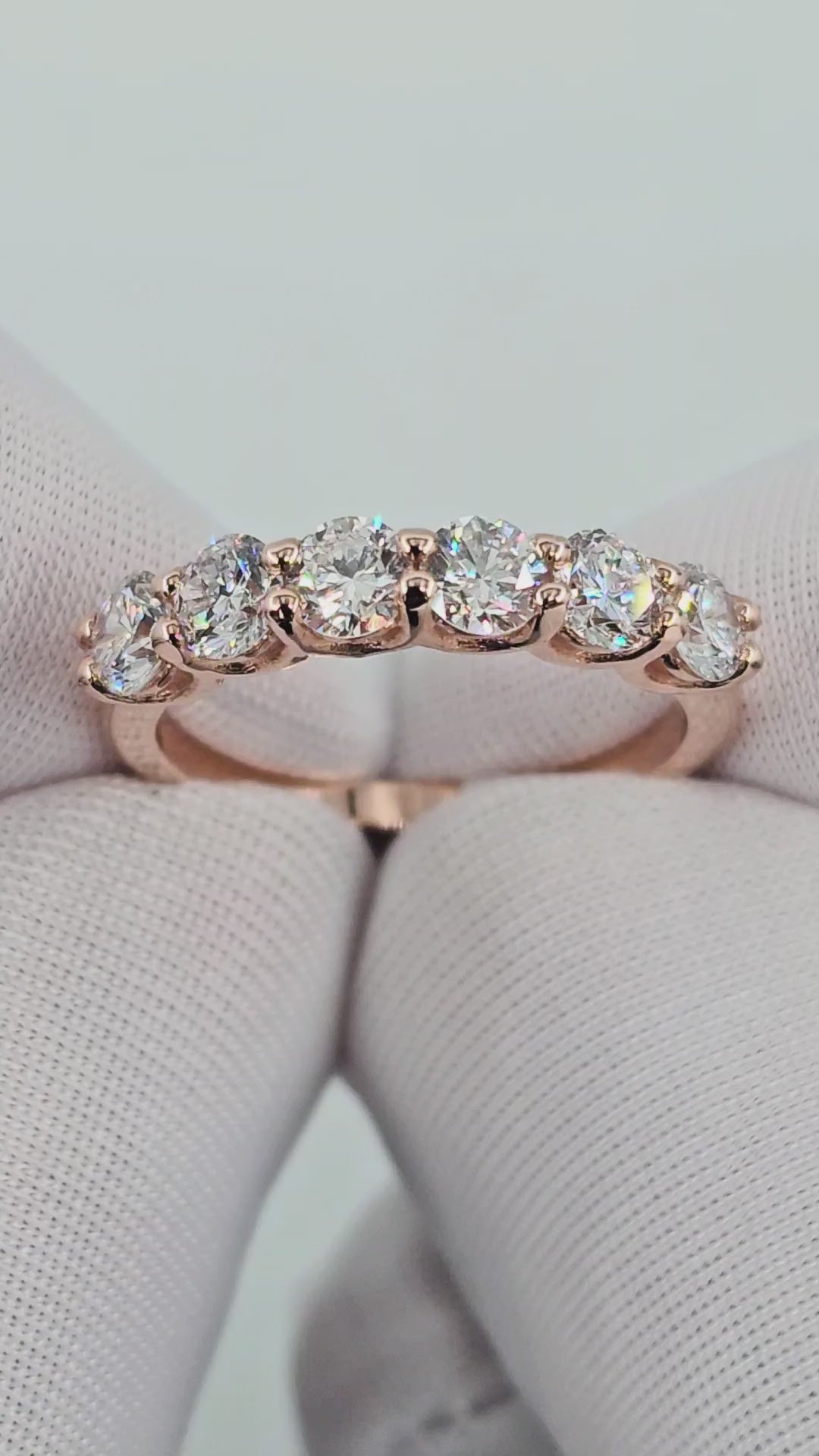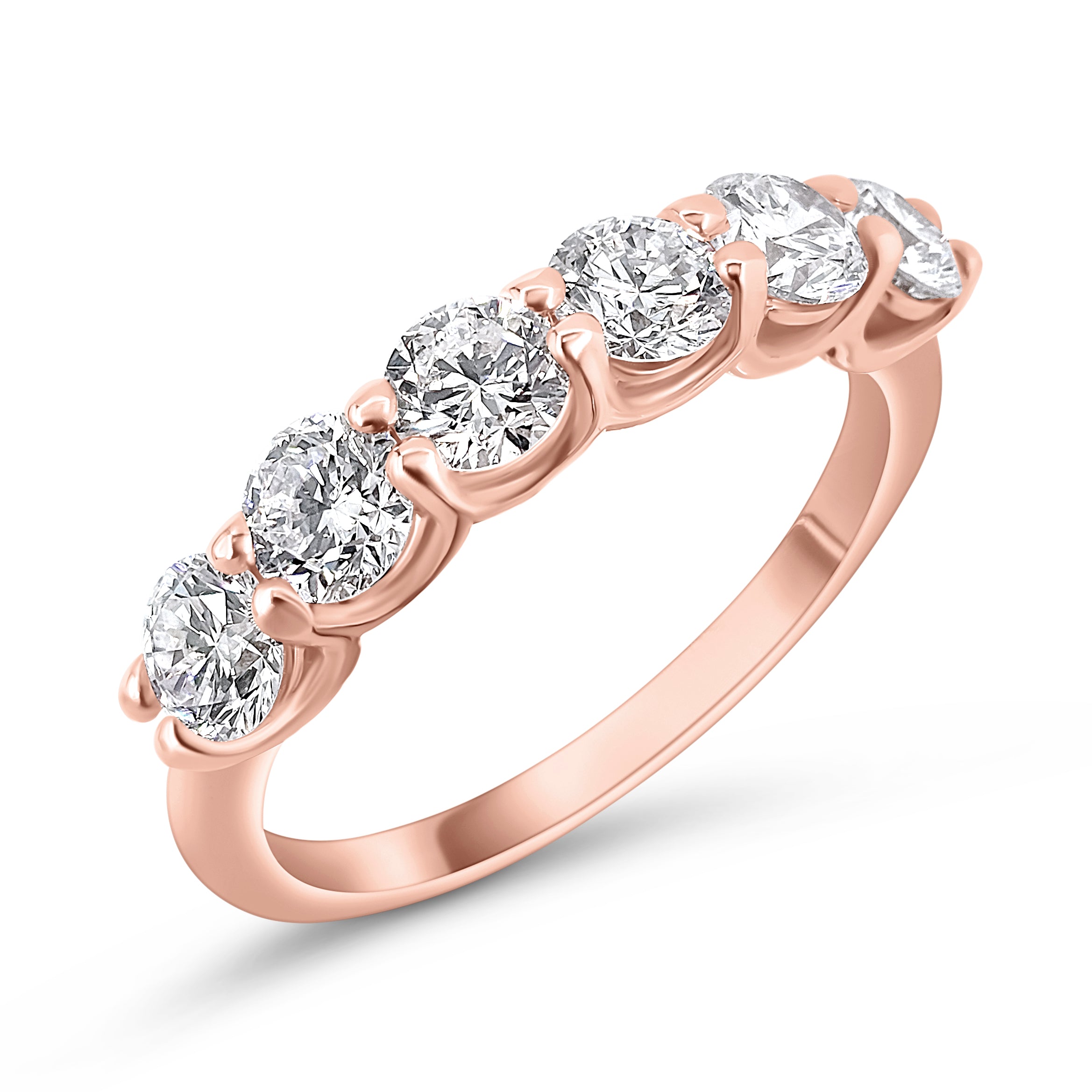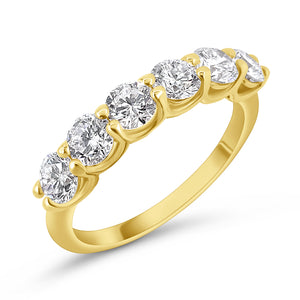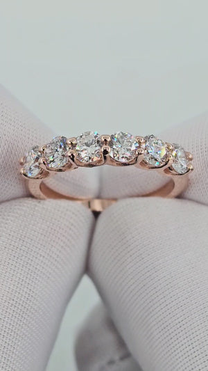 טבעת פס יהלומים 6 אבנים בחיתוך עגול אשר מעניקים לתכשיט מראה יוקרתי בעיצוב עדין.