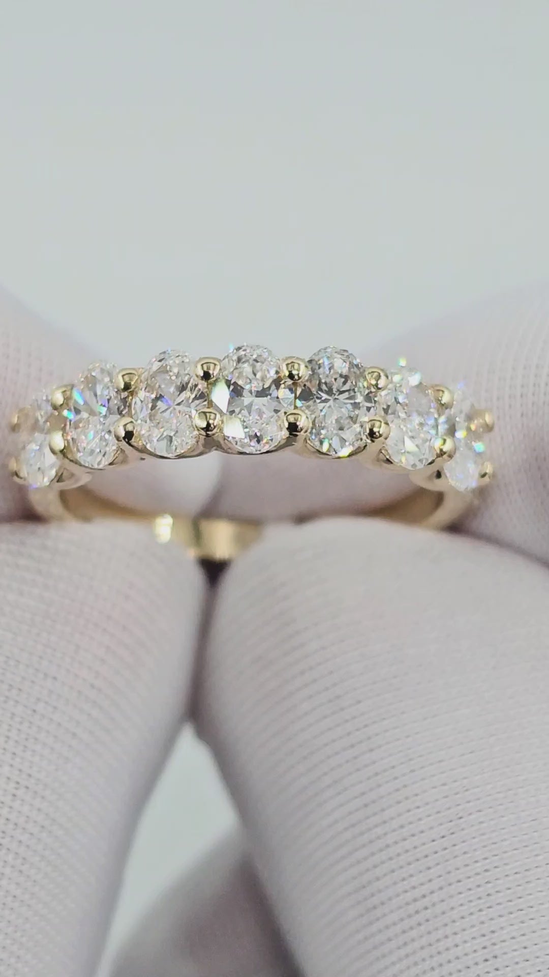 טבעת פס יהלומים 7 אבנים בחיתוך אובל אשר מעניקים לתכשיט מראה יוקרתי בעיצוב עדין.